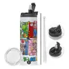 Back to the School Mario & Friends, Travel Tumbler θερμό με διπλό καπάκι, μεταλλικό καλαμάκι και βούρτσα καθαρισμού (Ανωξείδωτο 304 Food grade, BPA free, 600ml)