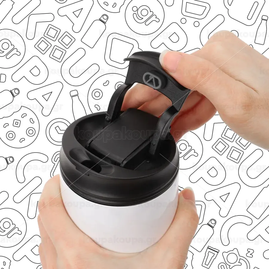 Καπάκι: NAI, 2 καπάκια για να επιλέξετε ανάμεσα σε απλό ποτήρι με καλαμάκι ή μετατροπή σε παγούρι θερμό με 2 τρόπους χρήσης (καλαμάκι ή στόμιο)