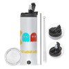 Pacman waka waka waka, Travel Tumbler θερμό με διπλό καπάκι, μεταλλικό καλαμάκι και βούρτσα καθαρισμού (Ανωξείδωτο 304 Food grade, BPA free, 600ml)