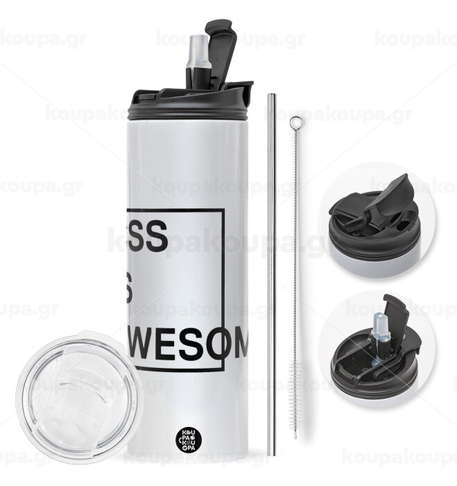 CSS is awesome, Travel Tumbler θερμό με διπλό καπάκι, μεταλλικό καλαμάκι και βούρτσα καθαρισμού (Ανωξείδωτο 304 Food grade, BPA free, 600ml)