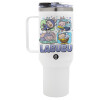 Labubu, Travel Tumbler θερμό με διπλό καπάκι, μεταλλικό καλαμάκι και βούρτσα καθαρισμού (Ανωξείδωτο 304 Food grade, BPA free, 600ml)