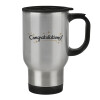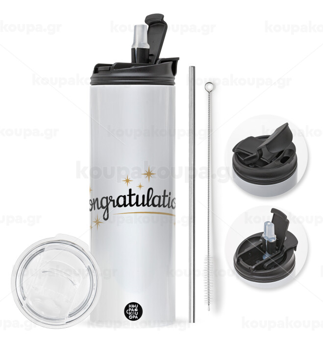 Congratulations, Travel Tumbler θερμό με διπλό καπάκι, μεταλλικό καλαμάκι και βούρτσα καθαρισμού (Ανωξείδωτο 304 Food grade, BPA free, 600ml)