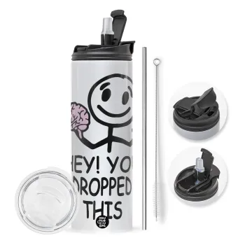 Hey! You dropped this, Travel Tumbler θερμό με διπλό καπάκι, μεταλλικό καλαμάκι και βούρτσα καθαρισμού (Ανωξείδωτο 304 Food grade, BPA free, 600ml)