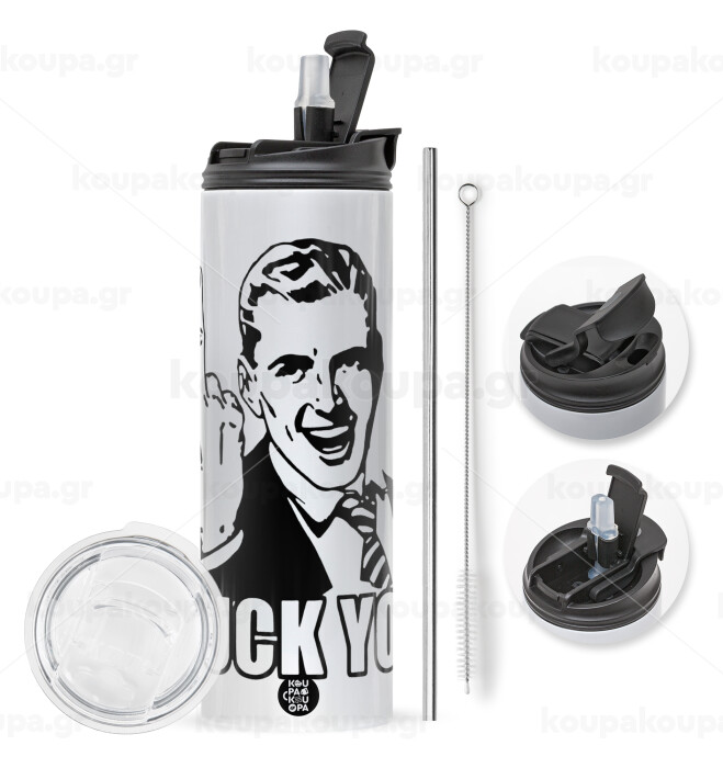 The finger, Travel Tumbler θερμό με διπλό καπάκι, μεταλλικό καλαμάκι και βούρτσα καθαρισμού (Ανωξείδωτο 304 Food grade, BPA free, 600ml)