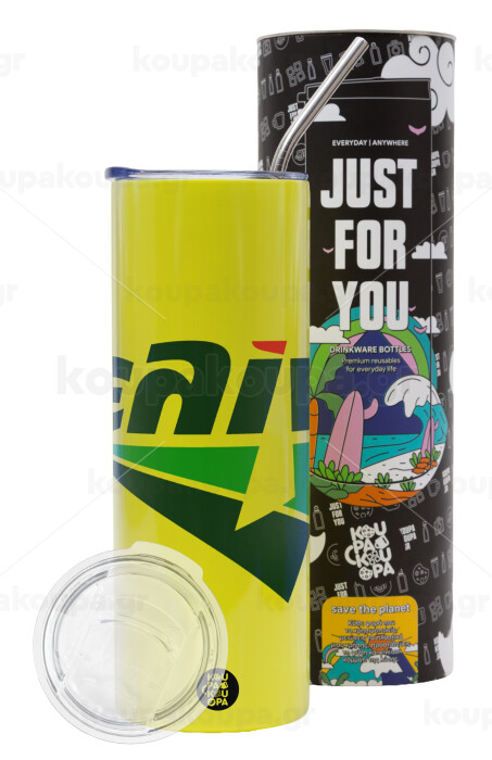 Πρατήριο καυσίμων ΕΛΙΝ, Neon Yellow Travel Tumbler θερμό, μεταλλικό καλαμάκι(Ανωξείδωτο 304 Food grade, BPA free, 600ml)