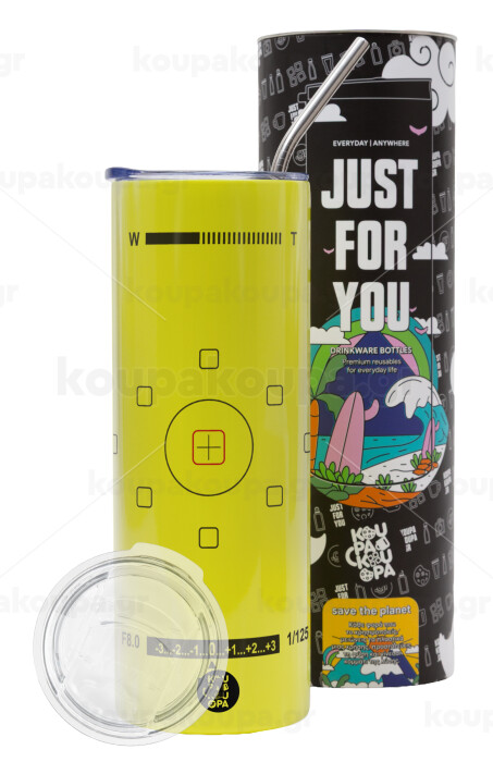 Camera viewfinder, Neon Yellow Travel Tumbler θερμό, μεταλλικό καλαμάκι(Ανωξείδωτο 304 Food grade, BPA free, 600ml)