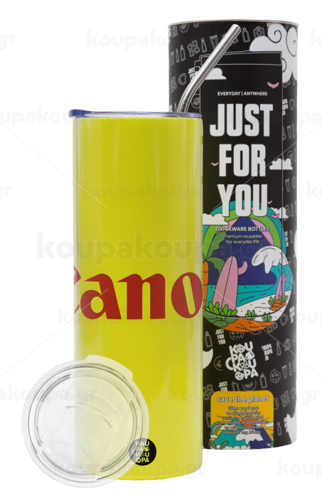 Canon, Neon Yellow Travel Tumbler θερμό, μεταλλικό καλαμάκι(Ανωξείδωτο 304 Food grade, BPA free, 600ml)