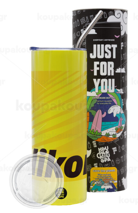 Nikon, Neon Yellow Travel Tumbler θερμό, μεταλλικό καλαμάκι(Ανωξείδωτο 304 Food grade, BPA free, 600ml)