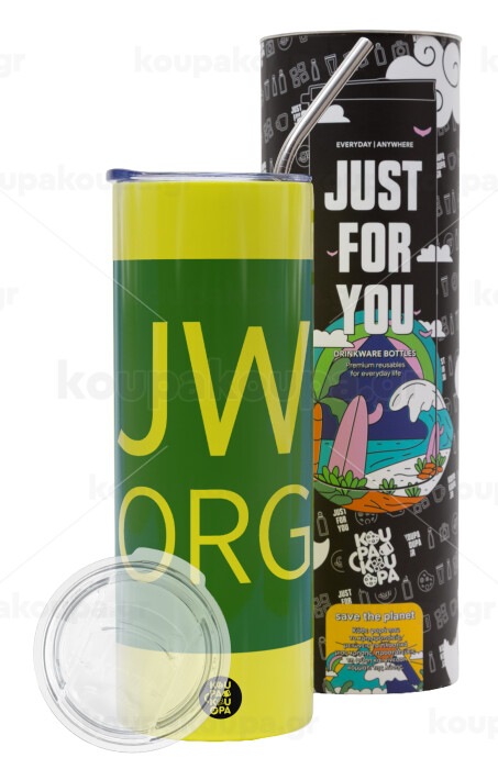 JW.ORG, Neon Yellow Travel Tumbler θερμό, μεταλλικό καλαμάκι(Ανωξείδωτο 304 Food grade, BPA free, 600ml)