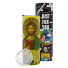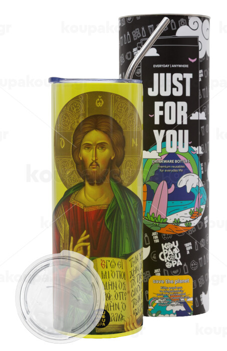 Ιησούς, Neon Yellow Travel Tumbler θερμό, μεταλλικό καλαμάκι(Ανωξείδωτο 304 Food grade, BPA free, 600ml)
