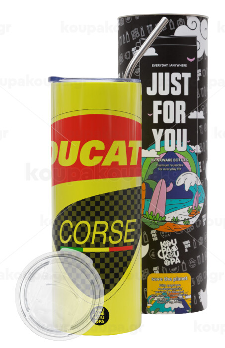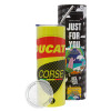 Ducati, Neon Yellow Travel Tumbler θερμό, μεταλλικό καλαμάκι(Ανωξείδωτο 304 Food grade, BPA free, 600ml)