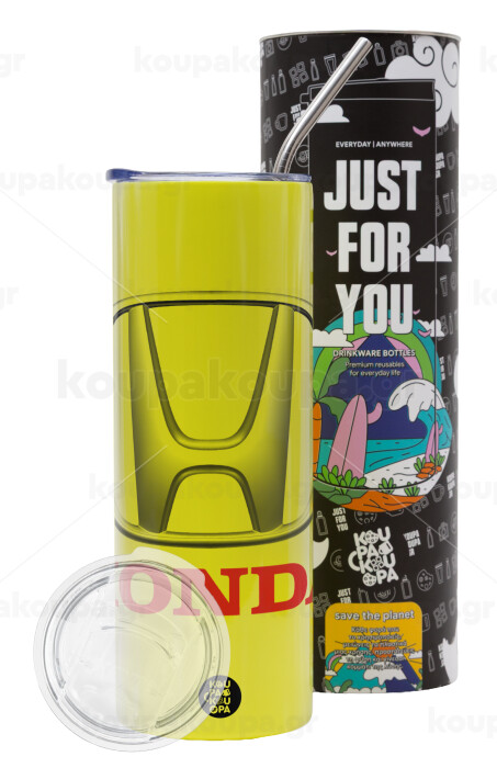 HONDA, Neon Yellow Travel Tumbler θερμό, μεταλλικό καλαμάκι(Ανωξείδωτο 304 Food grade, BPA free, 600ml)