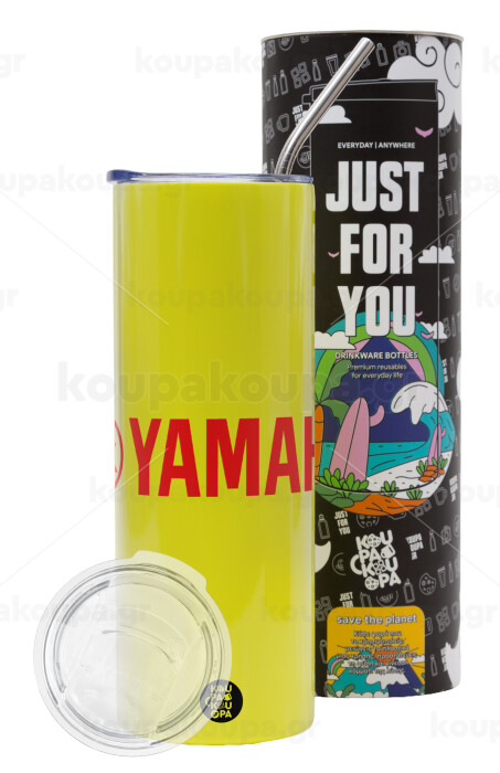 Yamaha, Neon Yellow Travel Tumbler θερμό, μεταλλικό καλαμάκι(Ανωξείδωτο 304 Food grade, BPA free, 600ml)