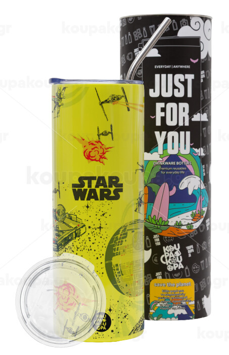 Ο πόλεμος των άστρων, Neon Yellow Travel Tumbler θερμό, μεταλλικό καλαμάκι(Ανωξείδωτο 304 Food grade, BPA free, 600ml)