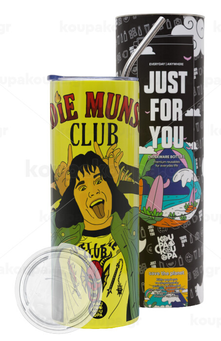 Eddie Munson, Neon Yellow Travel Tumbler θερμό, μεταλλικό καλαμάκι(Ανωξείδωτο 304 Food grade, BPA free, 600ml)