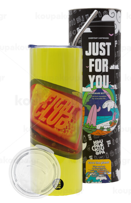 Fight Club, Neon Yellow Travel Tumbler θερμό, μεταλλικό καλαμάκι(Ανωξείδωτο 304 Food grade, BPA free, 600ml)