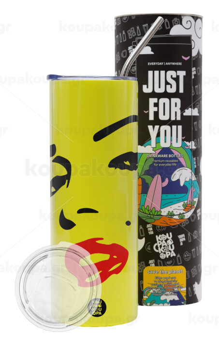 Marilyn Monroe, Neon Yellow Travel Tumbler θερμό, μεταλλικό καλαμάκι(Ανωξείδωτο 304 Food grade, BPA free, 600ml)