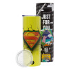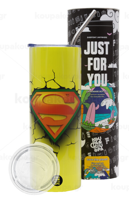 Superman cracked, Neon Yellow Travel Tumbler θερμό, μεταλλικό καλαμάκι(Ανωξείδωτο 304 Food grade, BPA free, 600ml)