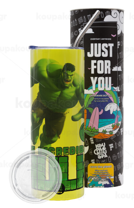 Hulk, Neon Yellow Travel Tumbler θερμό, μεταλλικό καλαμάκι(Ανωξείδωτο 304 Food grade, BPA free, 600ml)