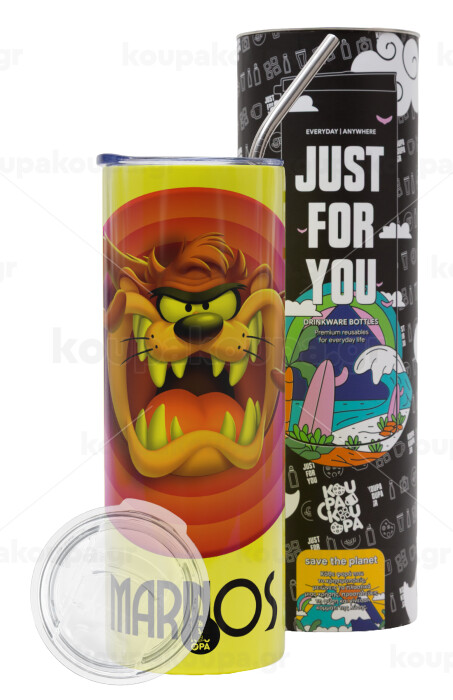 Taz, Neon Yellow Travel Tumbler θερμό, μεταλλικό καλαμάκι(Ανωξείδωτο 304 Food grade, BPA free, 600ml)