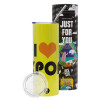 I Love KPOP, Neon Yellow Travel Tumbler θερμό, μεταλλικό καλαμάκι(Ανωξείδωτο 304 Food grade, BPA free, 600ml)