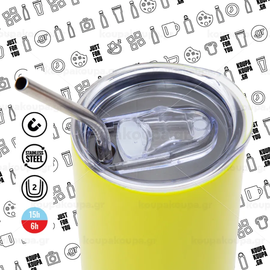 Eco friendly ποτήρι θερμό 600ml με μεταλλικό επαναχρησιμοποιούμενο καλαμάκι. Απολαύστε το αγαπημένο σας ρόφημα κάθε στιγμή στο μοναδικό αυτό οικολογικό θερμό. Διατηρεί τη θερμοκρασία για αρκετές ώρες και είναι κατασκευασμένο από ανοξείδωτο ατσάλι. Κατάλληλο για ζεστά και κρύα ροφήματα.