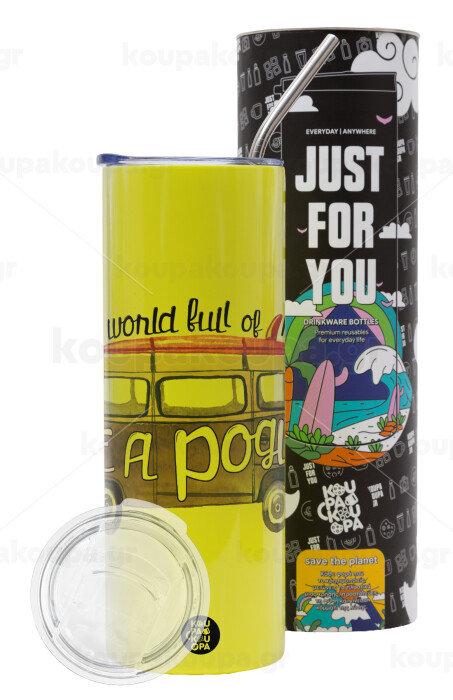 Outerbanks Pogue Life, Neon Yellow Travel Tumbler θερμό, μεταλλικό καλαμάκι(Ανωξείδωτο 304 Food grade, BPA free, 600ml)