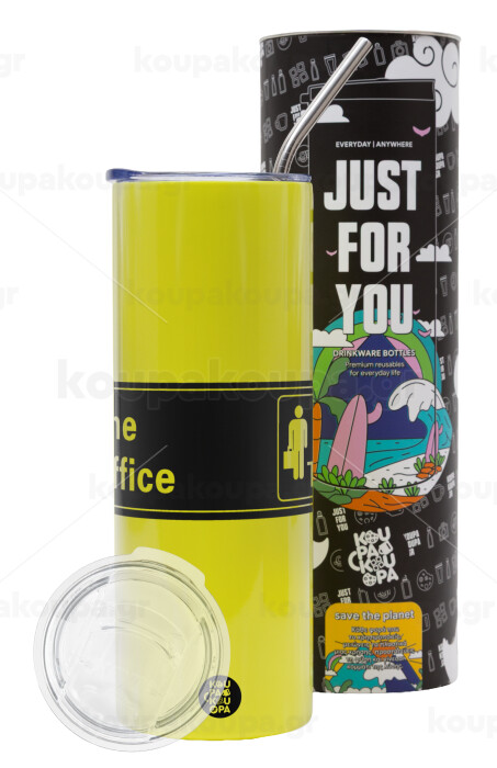The office, Neon Yellow Travel Tumbler θερμό, μεταλλικό καλαμάκι(Ανωξείδωτο 304 Food grade, BPA free, 600ml)