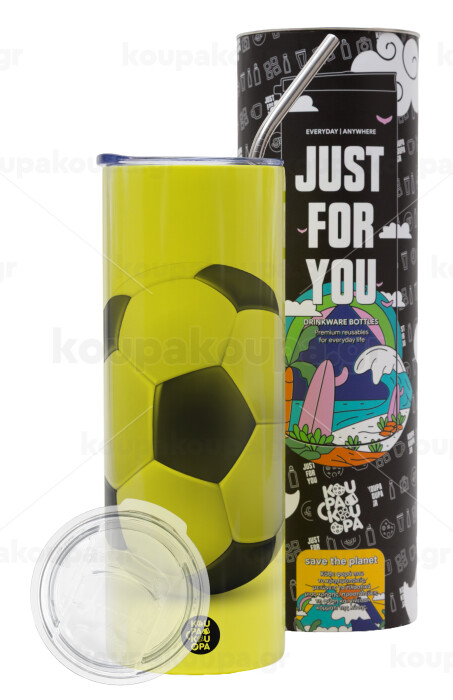 Μπάλα ποδοσφαίρου, Neon Yellow Travel Tumbler θερμό, μεταλλικό καλαμάκι(Ανωξείδωτο 304 Food grade, BPA free, 600ml)