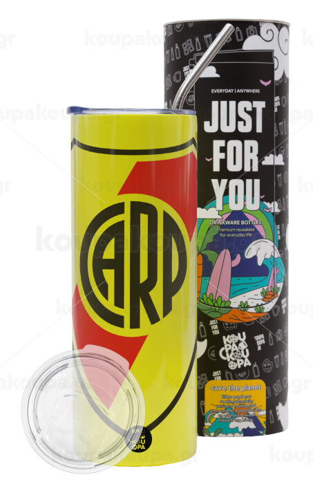 River Plate, Neon Yellow Travel Tumbler θερμό, μεταλλικό καλαμάκι(Ανωξείδωτο 304 Food grade, BPA free, 600ml)