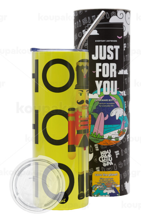 Μολυβένιος στρατιώτης, Neon Yellow Travel Tumbler θερμό, μεταλλικό καλαμάκι(Ανωξείδωτο 304 Food grade, BPA free, 600ml)