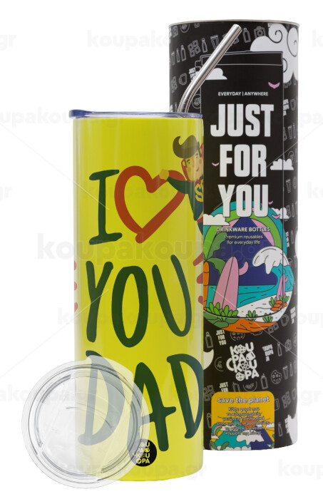 Super Dad, Neon Yellow Travel Tumbler θερμό, μεταλλικό καλαμάκι(Ανωξείδωτο 304 Food grade, BPA free, 600ml)