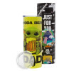 Yoda Best Dad, Neon Yellow Travel Tumbler θερμό, μεταλλικό καλαμάκι(Ανωξείδωτο 304 Food grade, BPA free, 600ml)
