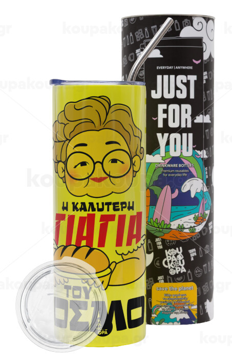 Η καλύτερη γιαγιά του κόσμου!, Neon Yellow Travel Tumbler θερμό, μεταλλικό καλαμάκι(Ανωξείδωτο 304 Food grade, BPA free, 600ml)
