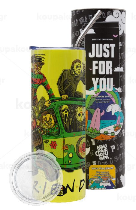 Halloween Friends Scooby Doo, Neon Yellow Travel Tumbler θερμό, μεταλλικό καλαμάκι(Ανωξείδωτο 304 Food grade, BPA free, 600ml)