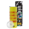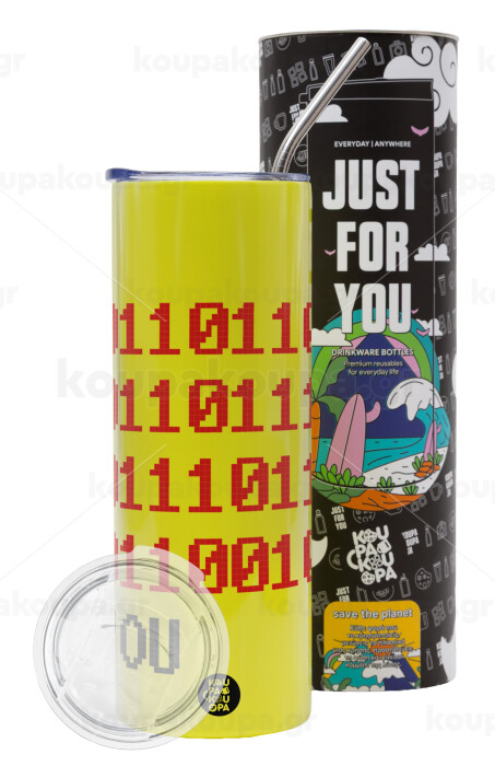 I .... YOU, binary secret MSG, Neon Yellow Travel Tumbler θερμό, μεταλλικό καλαμάκι(Ανωξείδωτο 304 Food grade, BPA free, 600ml)
