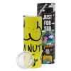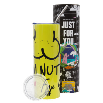 I'm Nuts for you, Neon Yellow Travel Tumbler θερμό, μεταλλικό καλαμάκι(Ανωξείδωτο 304 Food grade, BPA free, 600ml)