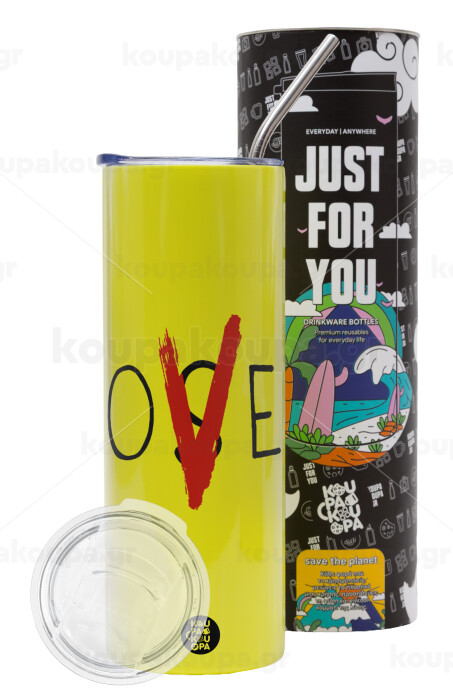 IT Lov(s)er, Neon Yellow Travel Tumbler θερμό, μεταλλικό καλαμάκι(Ανωξείδωτο 304 Food grade, BPA free, 600ml)