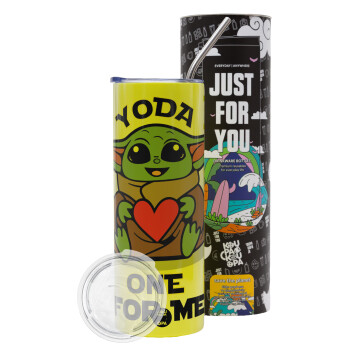 Yoda, one for me , Neon Yellow Travel Tumbler θερμό, μεταλλικό καλαμάκι(Ανωξείδωτο 304 Food grade, BPA free, 600ml)