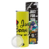 Just born already so loved, Neon Yellow Travel Tumbler θερμό, μεταλλικό καλαμάκι(Ανωξείδωτο 304 Food grade, BPA free, 600ml)