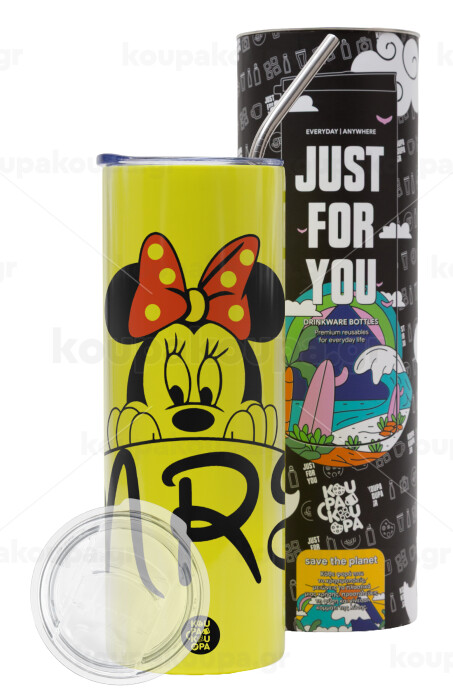 Minnie Mrs, Neon Yellow Travel Tumbler θερμό, μεταλλικό καλαμάκι(Ανωξείδωτο 304 Food grade, BPA free, 600ml)