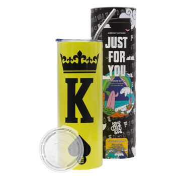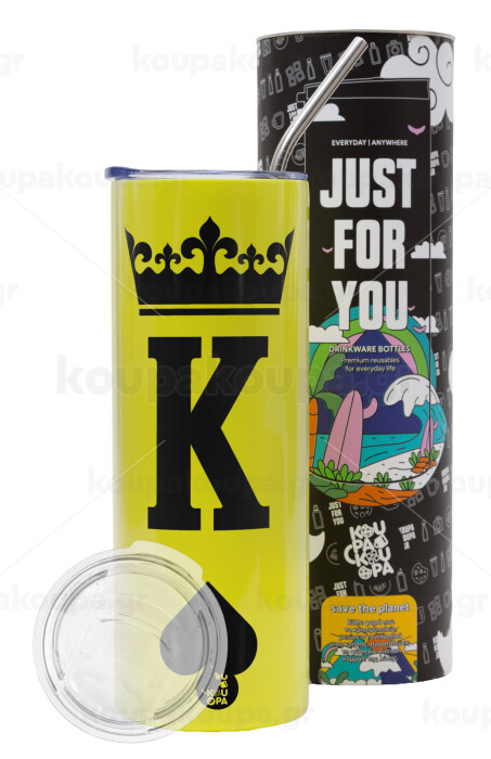 King, Neon Yellow Travel Tumbler θερμό, μεταλλικό καλαμάκι(Ανωξείδωτο 304 Food grade, BPA free, 600ml)
