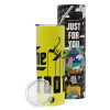 The Groom, Neon Yellow Travel Tumbler θερμό, μεταλλικό καλαμάκι(Ανωξείδωτο 304 Food grade, BPA free, 600ml)
