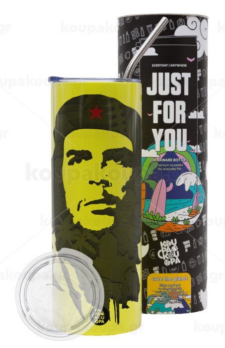 Che Guevara, Neon Yellow Travel Tumbler θερμό, μεταλλικό καλαμάκι(Ανωξείδωτο 304 Food grade, BPA free, 600ml)