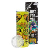 School's Out For Summer Teacher Life, Neon Yellow Travel Tumbler θερμό, μεταλλικό καλαμάκι(Ανωξείδωτο 304 Food grade, BPA free, 600ml)
