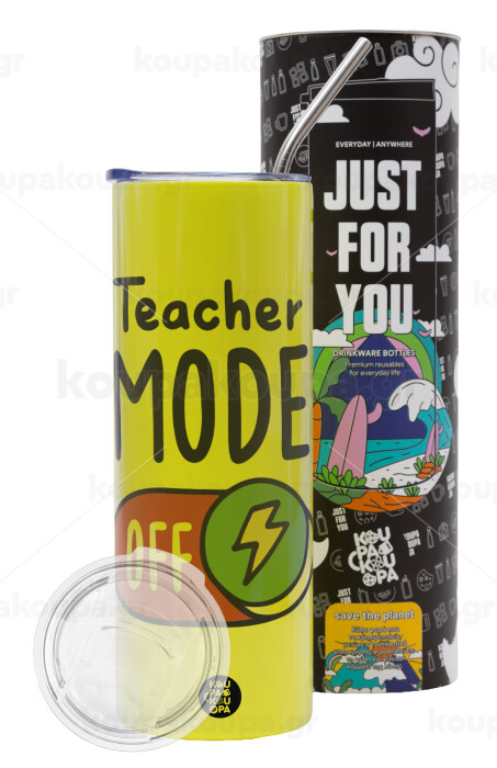Teacher mode, Neon Yellow Travel Tumbler θερμό, μεταλλικό καλαμάκι(Ανωξείδωτο 304 Food grade, BPA free, 600ml)