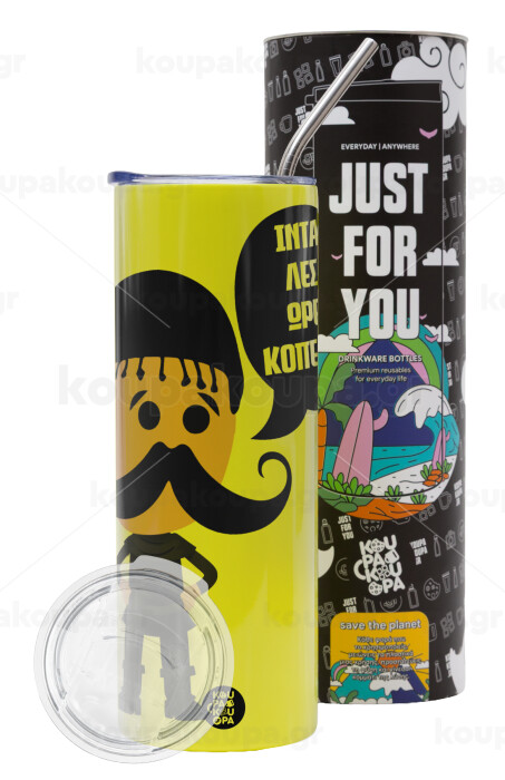 Κρητικός "Ίντα λες ωρέ κοπέλι", Neon Yellow Travel Tumbler θερμό, μεταλλικό καλαμάκι(Ανωξείδωτο 304 Food grade, BPA free, 600ml)