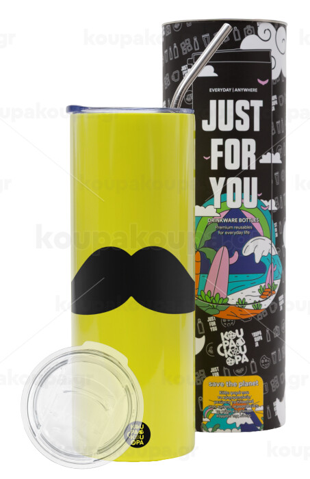Μουστάκι, Neon Yellow Travel Tumbler θερμό, μεταλλικό καλαμάκι(Ανωξείδωτο 304 Food grade, BPA free, 600ml)