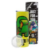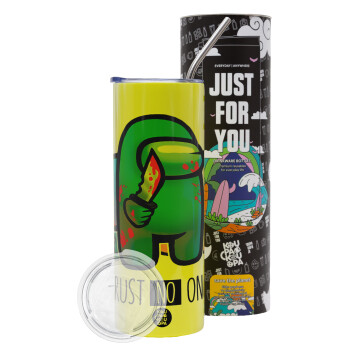 Among Trust no one, Neon Yellow Travel Tumbler θερμό, μεταλλικό καλαμάκι(Ανωξείδωτο 304 Food grade, BPA free, 600ml)