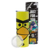 Angry birds eyes, Neon Yellow Travel Tumbler θερμό, μεταλλικό καλαμάκι(Ανωξείδωτο 304 Food grade, BPA free, 600ml)